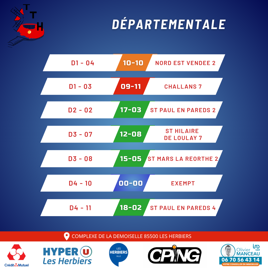 RESULTATS 4ème journée de championnat sénior