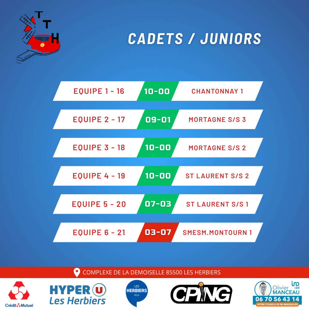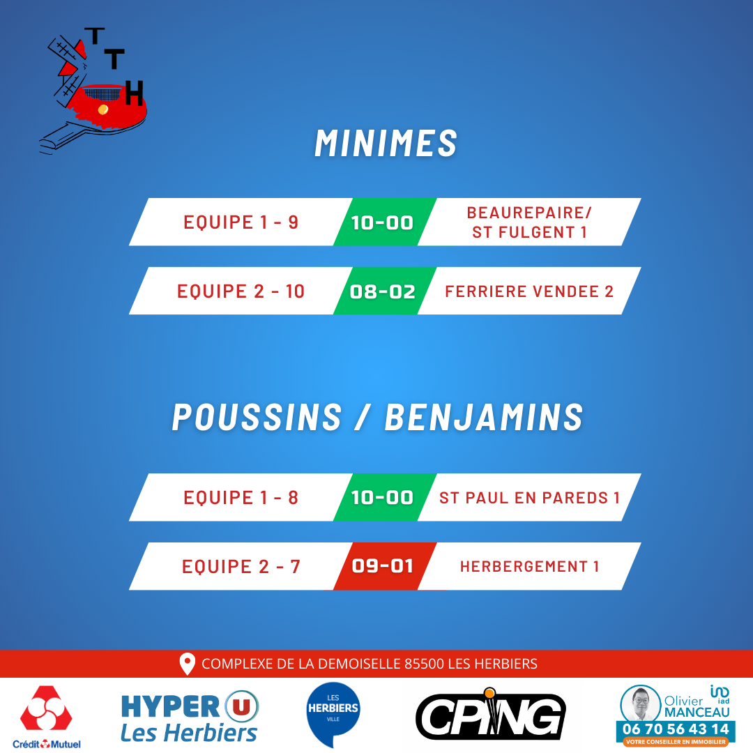 Voici les résultats de cette deuxième journée de championnat jeune !!!