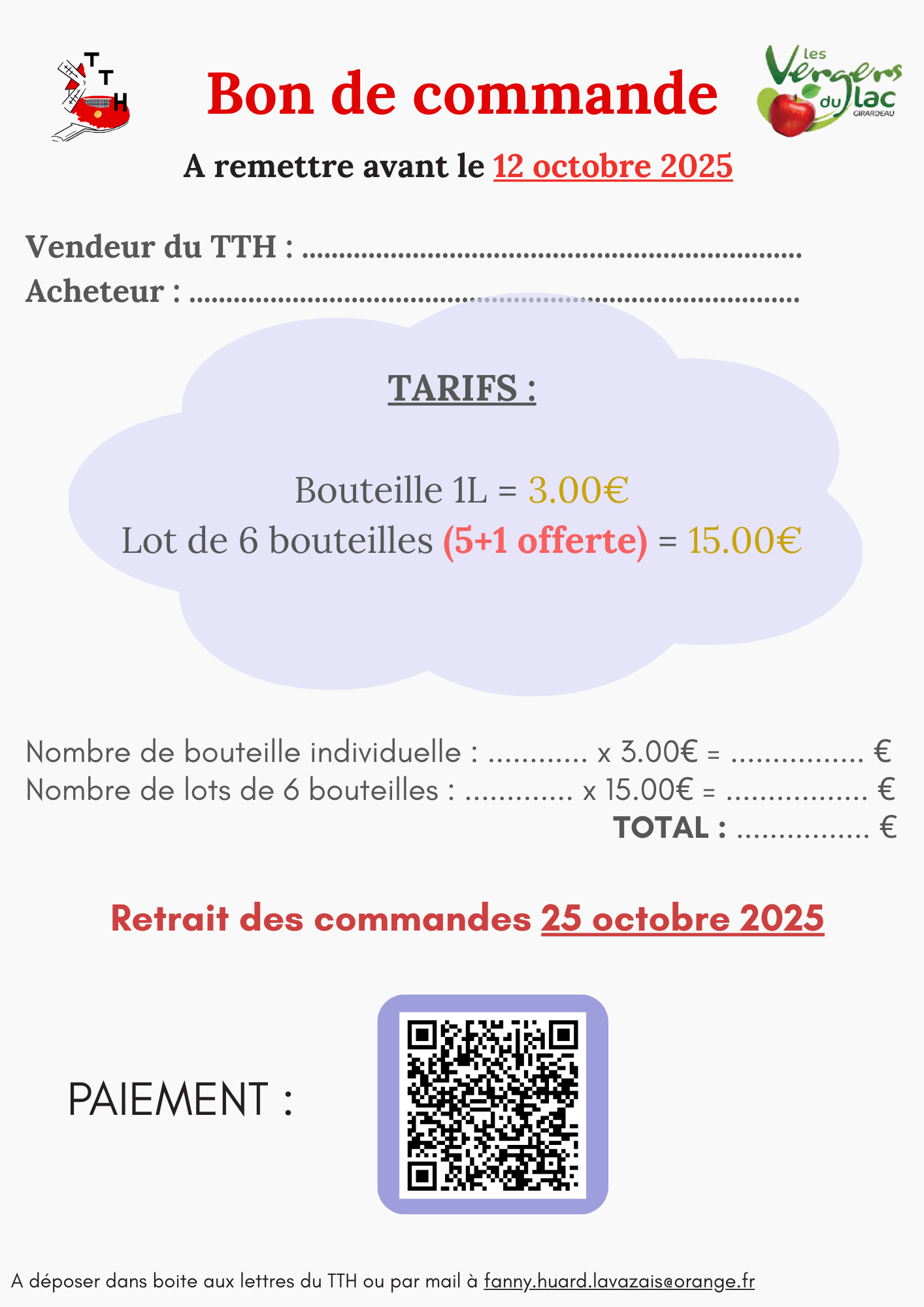 ° Retrait des commandes le 25 octobre 2025