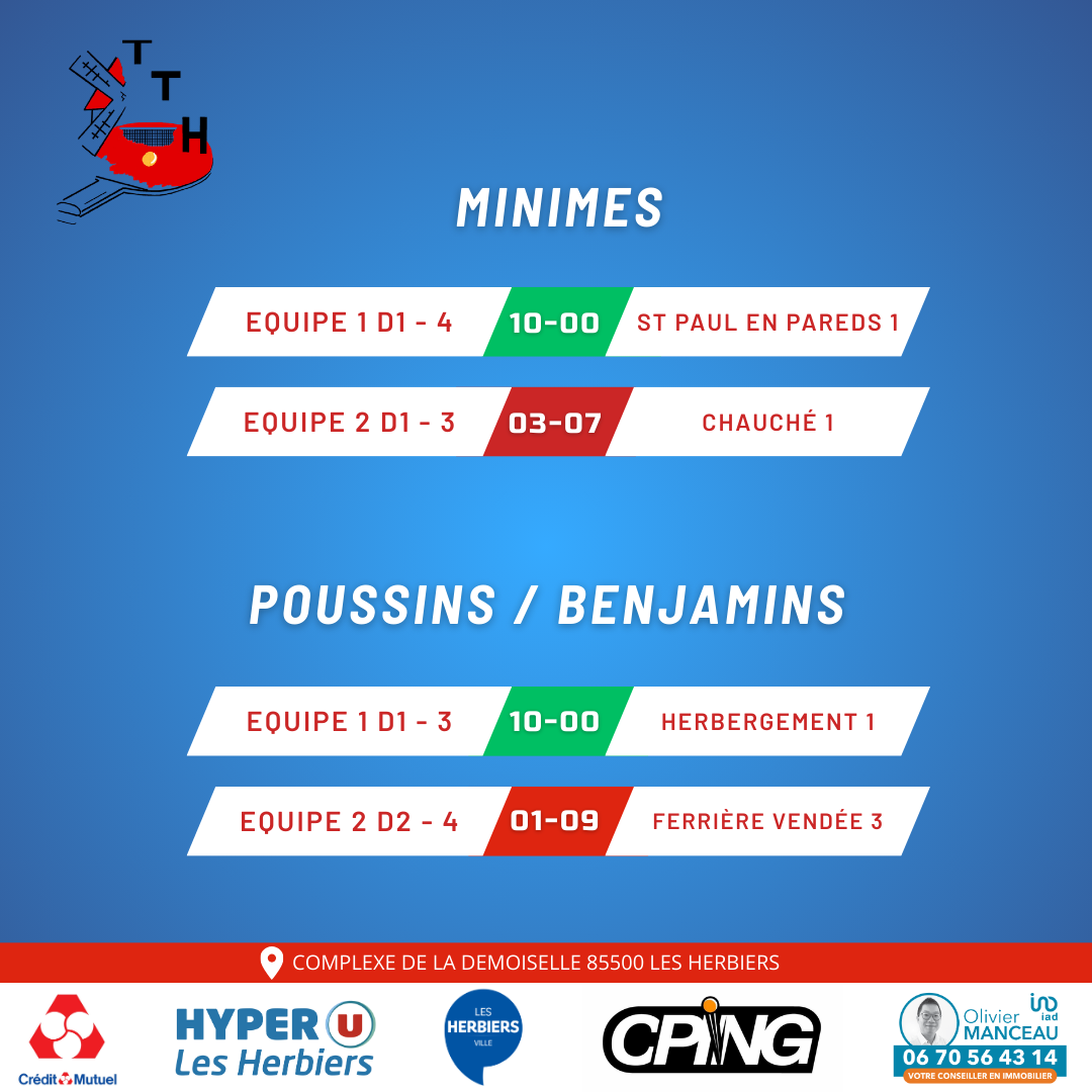 Résultats de cette journée de championnat jeunes :