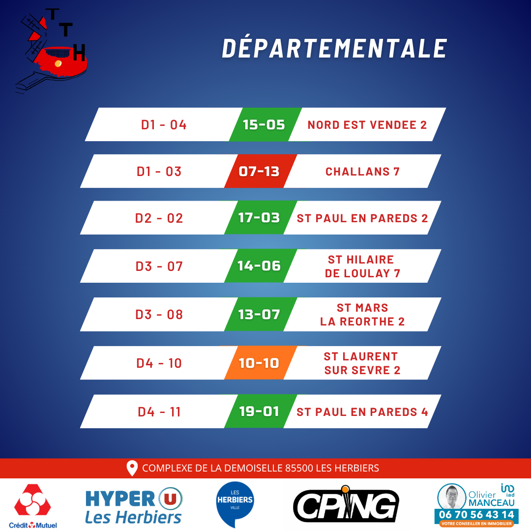 Résultats de la 4ème journée du championnat sénior dence week end !!